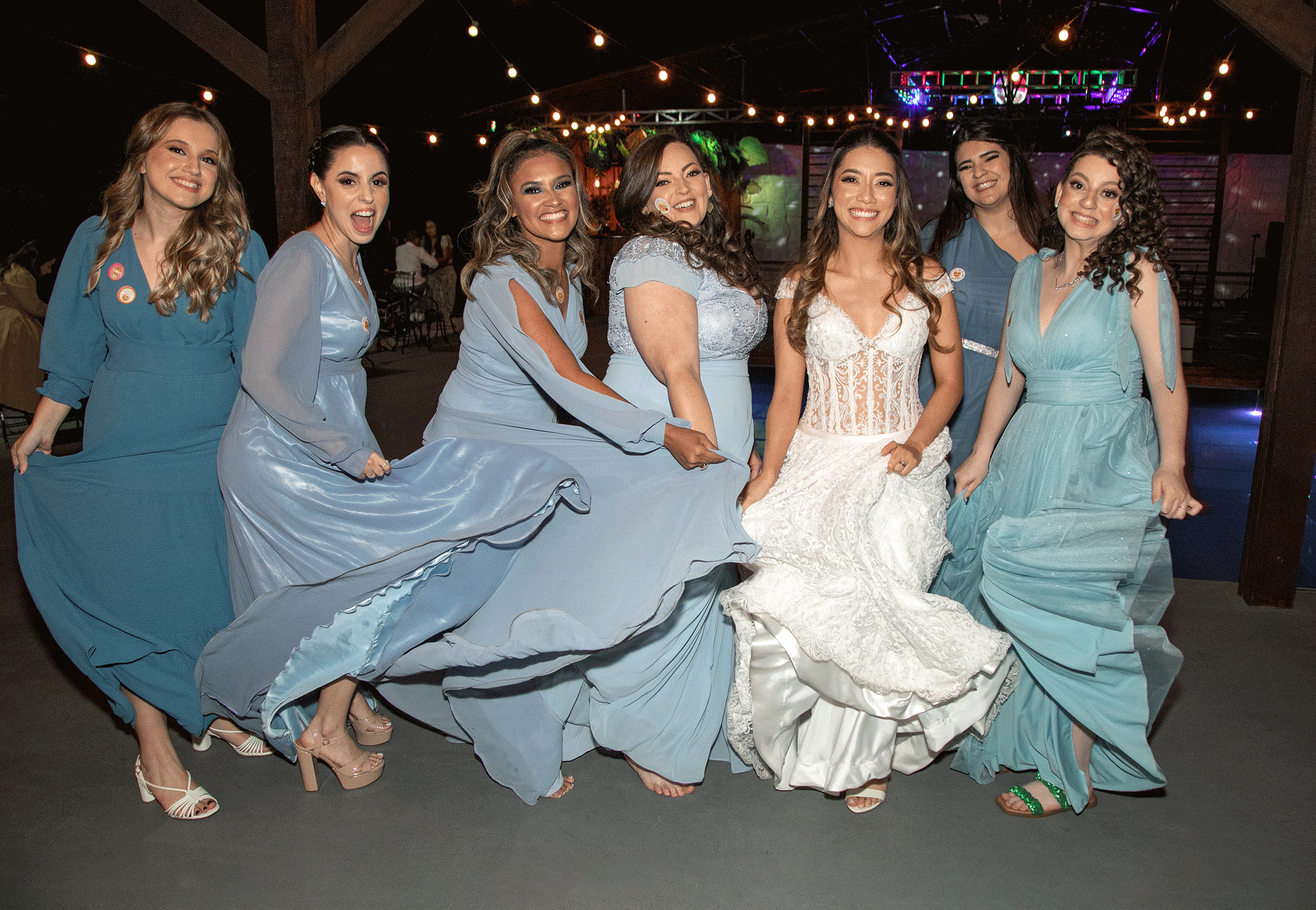 “Nosso mestre de cerimônias odiou isso, mas fizemos nossas danças de pais antes de nossa primeira dança como casal. Não queríamos continuar interrompendo a noite com momentos formais e planejados, então entramos direto na hora tradicional. Todos recuperaram o fôlego como nós fizemos (mãe/filho e pai/filha), e então, quando meu marido e eu estávamos terminando nossa primeira dança, pudemos convidar todos para se juntarem a nós na pista de dança. Definitivamente, ajudou a definir a vibração da festa que queríamos e deixou a energia continuar aumentando durante a noite.” -Kate W.