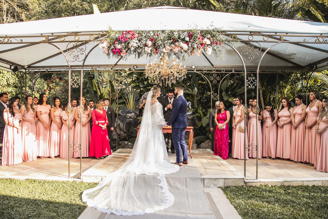 Além disso, um dos vestidos mais utilizados neste tipo de casamento são as mangas levemente bufantes (não como fazíamos nos anos 80 e 90), mas com um toque muito mais suave e elegante. Inclusive essa tendência está em alta, tanto nos casamentos, quanto na moda que consumimos para o dia a dia. Em 2020, o Birô WGSN, divulgou uma pesquisa de varejo que entre as roupas mais compradas do primeiro semestre daquele ano, estavam as blusas com mangas bufantes.