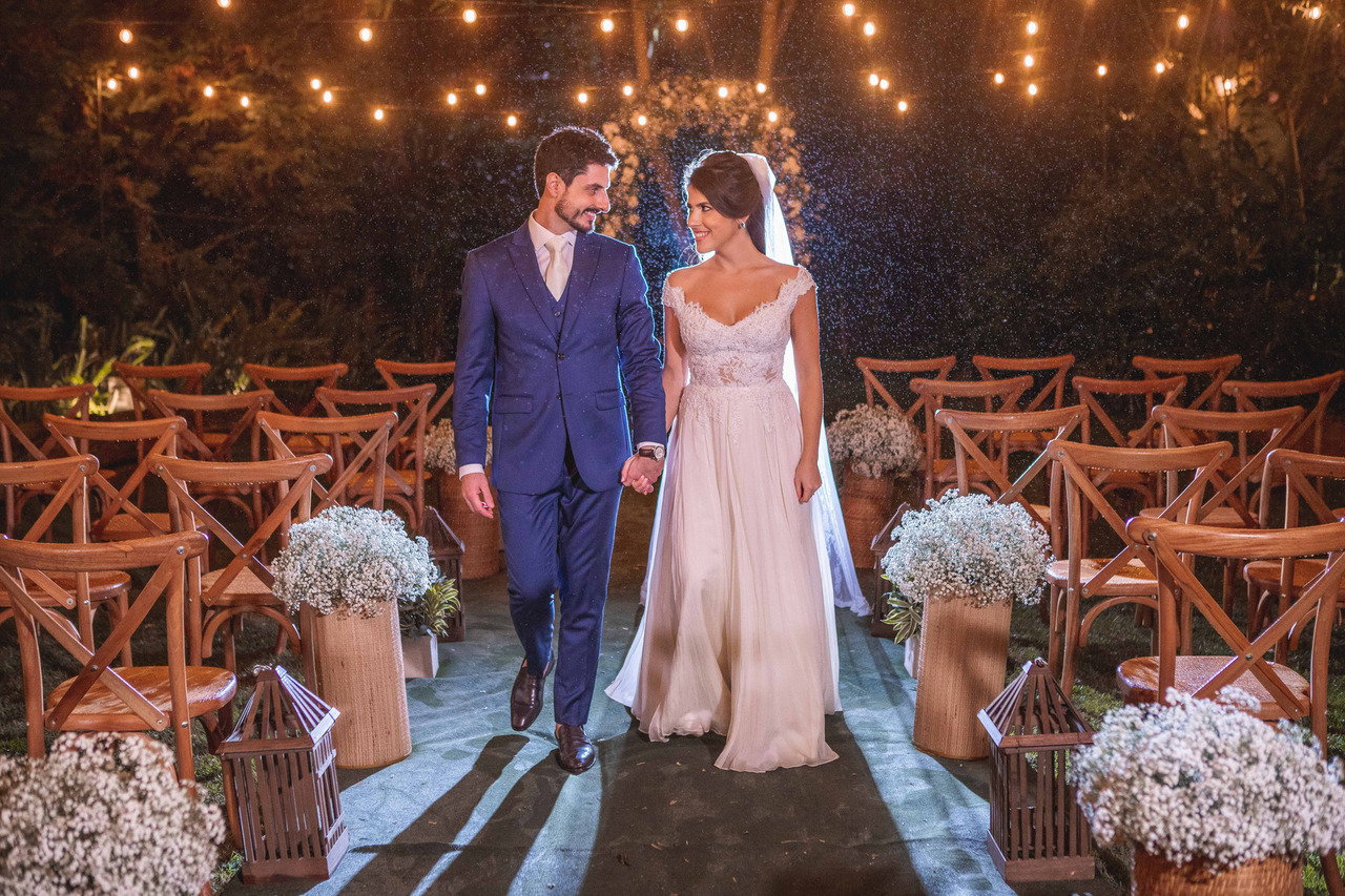 Inclusive, para os noivos, essa tendência não passará batida. Já que eles podem optar por usar ternos com cores mais escuras e sóbrias, e tem a vantagem de ousar na hora de escolher os calçados, ‘fugindo’ um pouco da tradicionalidade do sapato social e preto. Dessa maneira, também é interessante investir em outros tipos de gravatas, como a borboleta ou dispensar o uso desse acessório. O ideal é que ele também carregue uma flor no bolso, a chamada flor de lapela, combinando com toda a decoração cottage.