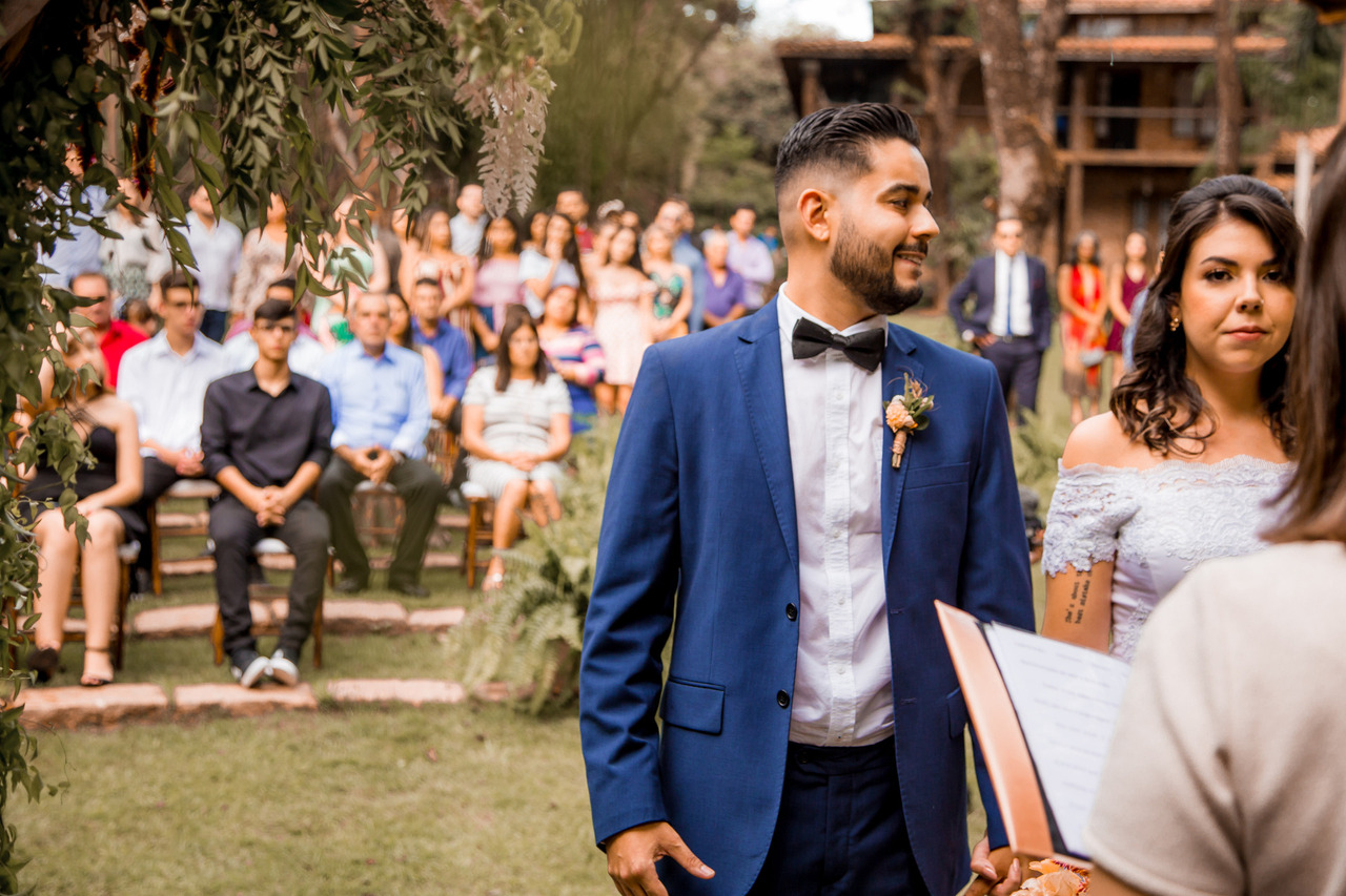 Pela ideia ser mais descontraída, e sair do tradicional, o traje dos noivos escolhido para o mini Wedding, pode ser diferente do casamento clássico.